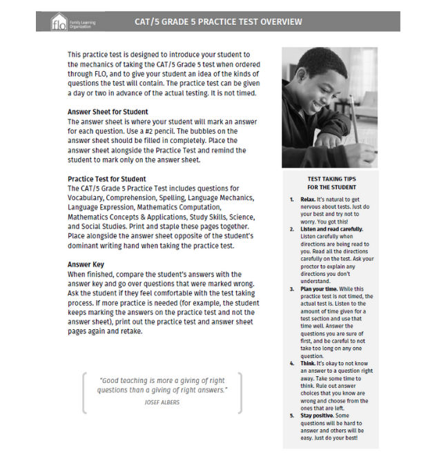 FLO offers 5 different nationally normed, standardized achievement tests.