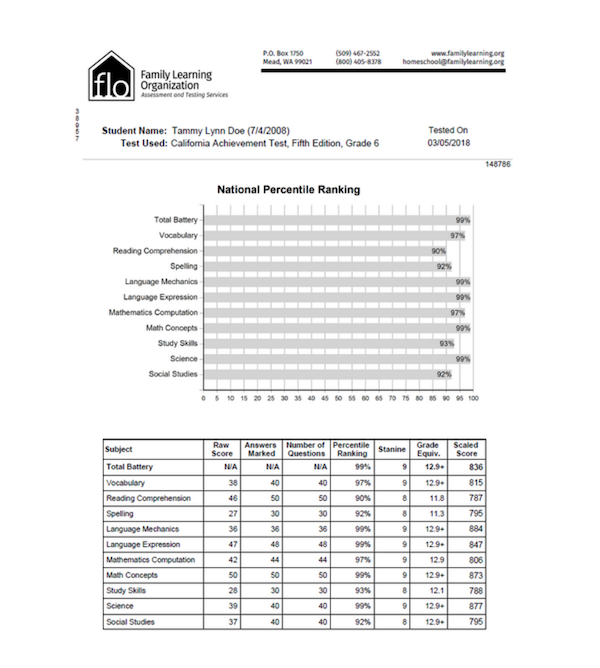 Scores will only be sent to the parents/guardians of the child tested unless a written request signed by the parent instructs us to do otherwise. FLO does not report any information to the authorities or organizations without written consent of the parent. Please note that if you are testing as part of a parent partnership, homelink, or similar program, copies of the results may be sent to the teacher or administrator of the program. Any questions regarding such a case should be posed to the teacher or program administrator.