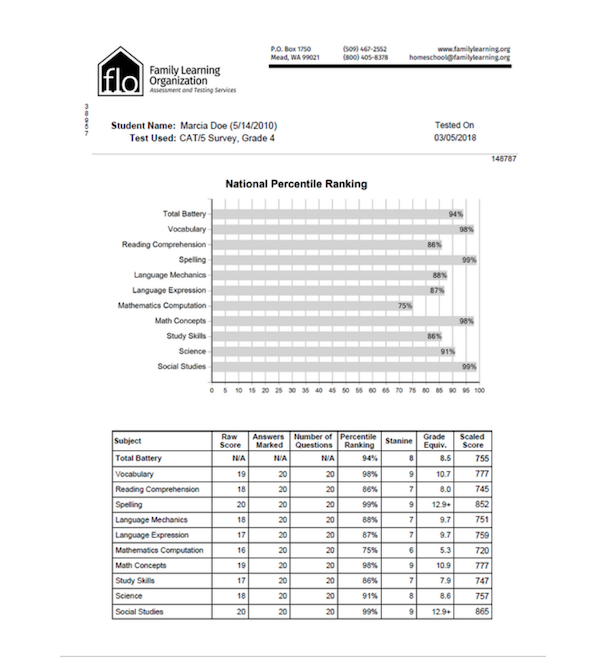 Scores will only be sent to the parents/guardians of the child tested unless a written request signed by the parent instructs us to do otherwise. FLO does not report any information to the authorities or organizations without written consent of the parent. Please note that if you are testing as part of a parent partnership, homelink, or similar program, copies of the results may be sent to the teacher or administrator of the program. Any questions regarding such a case should be posed to the teacher or program administrator.